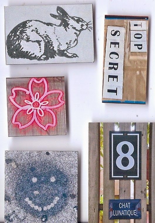 This nice Art Dog, guarding utility meters, accompanied by a beautiful Rabbit print and other pictures (Chat Lunatique = Lunatic Cat?), have been created and sent by Fleur Helsingor from the USA.